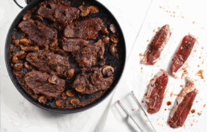 Who knew you can cook steak in 15 minutes? Well, with a pizza maker, you can. Serve this over mashed potatoes, pasta, or rice, and you have a full dinner in less than 30 minutes.