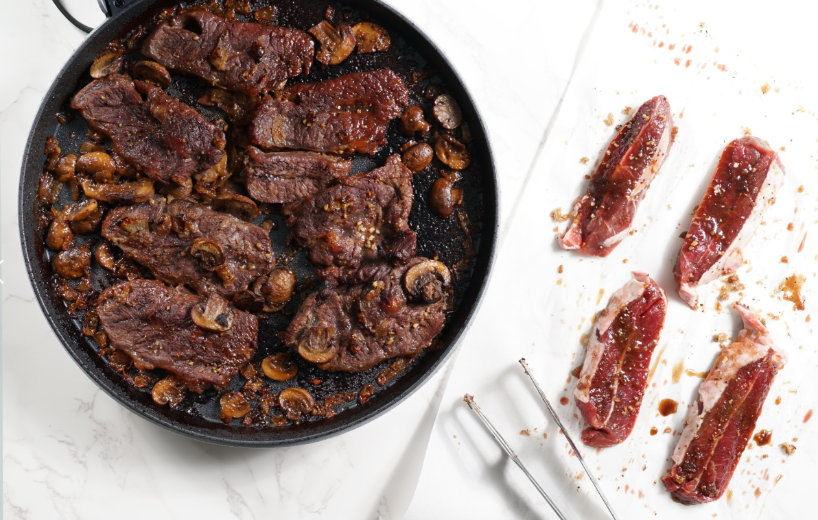 Minute Steaks in Mushroom Wine reduction